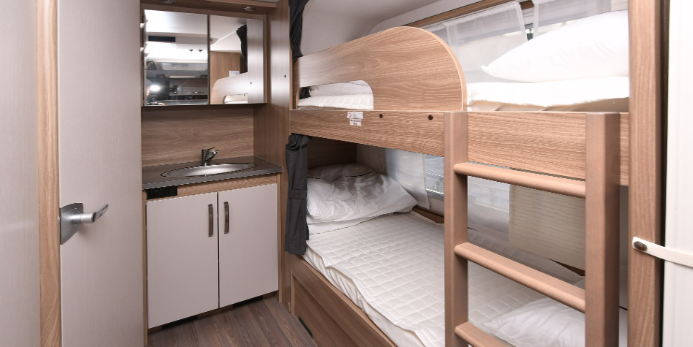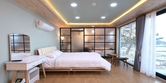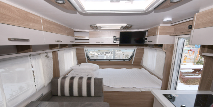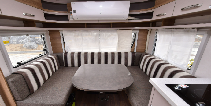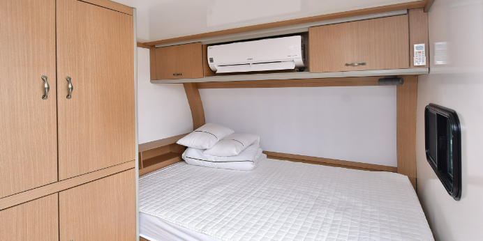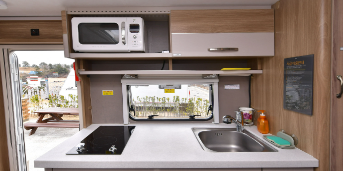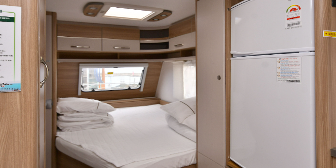 유럽산 고급 카라반으로 내부 화장실, 세면대, 냉·난방기 구비, 은은한 내부 실내등으로 연출하여 침대에서는 아름다운 해변을 조망할 수 있어요.