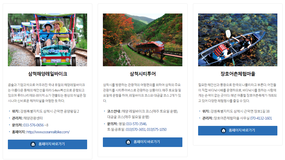 삼척해양레일바이크, 삼척시티투어, 장호어촌체험마을, 도계유리마을, 바다열차, 하이원추추파크
