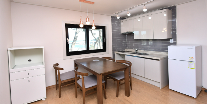 비품목록가전제품 : TV(24인치), 인덕션 렌지, 전기밥솥, 냉난방기, 냉장고, 전자렌지주방용품 : 식도, 도마, 수저, 공기, 대접, 주전자, 냄비, 바구니, 국자, 주걱, 식가위, 뒤집개, 집게, 쟁반, 컵, 후라이팬, 바가지, 수세미, 행주, 접시, 주방세제침구용품 : 침대커버, 침대패드, 요, 이불, 베개기타 : 휴지통, 소화기, 야외테이블, 파라솔