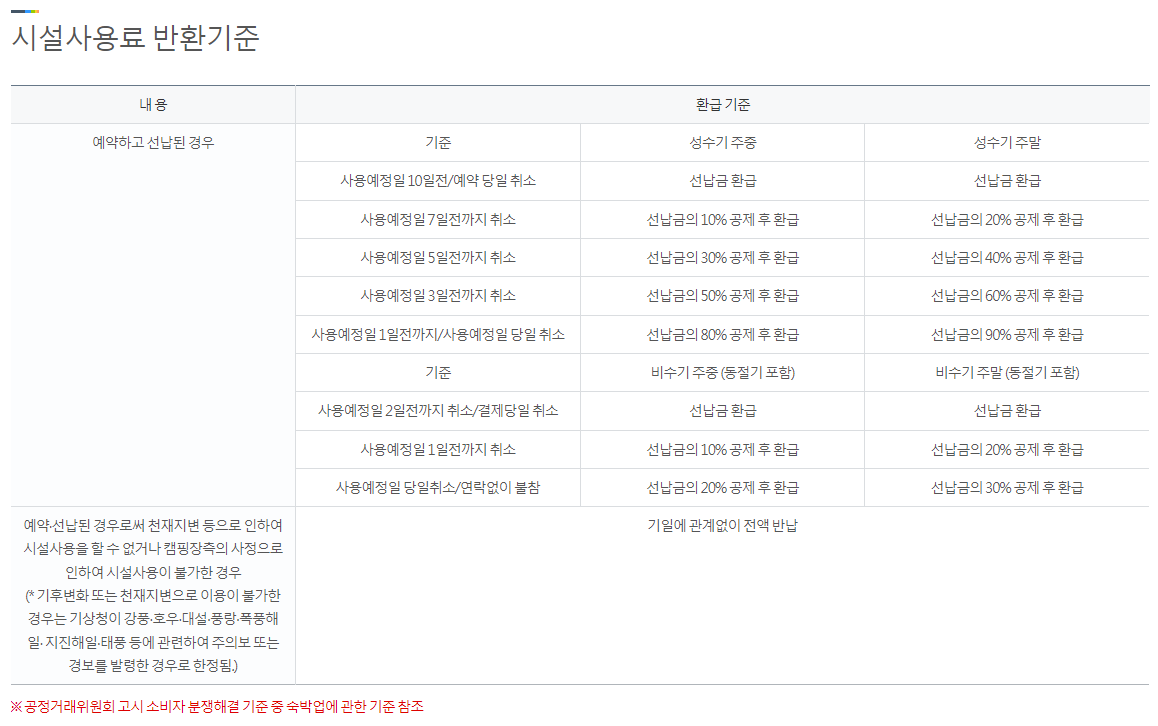 시설사용료 반환기준