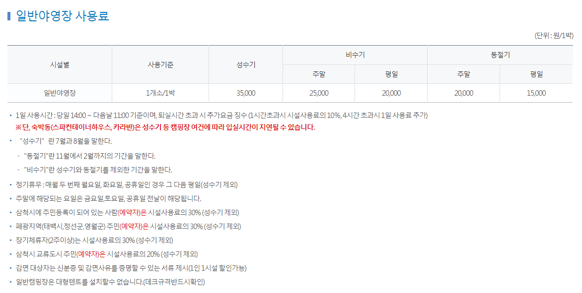 일반야영장 사용료