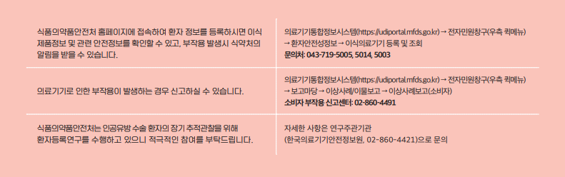 ⊙ 향후 발생할 수 있는 문제를 대비하여, 자신에게 이식된 제품정보(제조원, 모델명, 제조번호 등)를 알고 있을 것을 권고합니다.