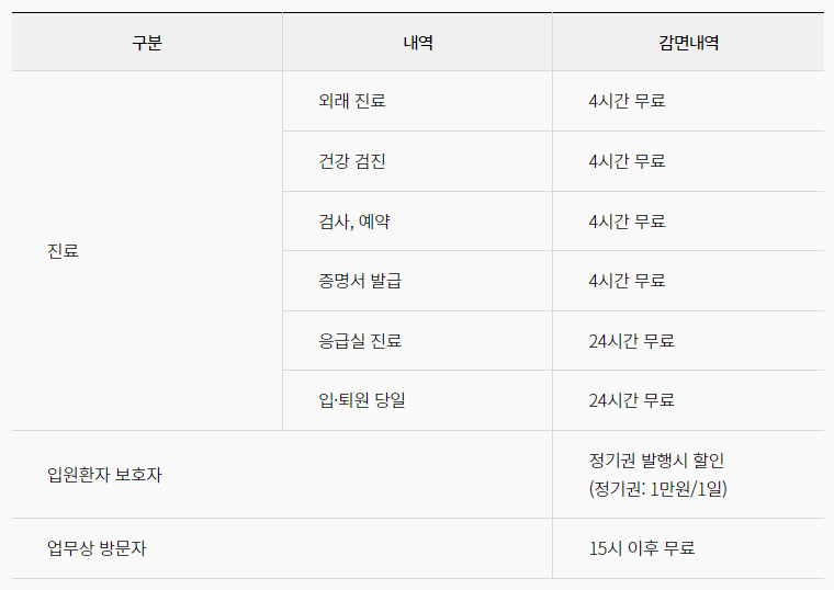 입원환자 보호자 - 정기권 발행 시 할인(정기권 1만 원/1일)