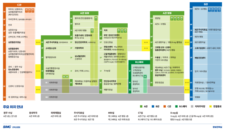 ※ 지하주차장(B2층)과 A, B, C관이 연결되어 있습니다.