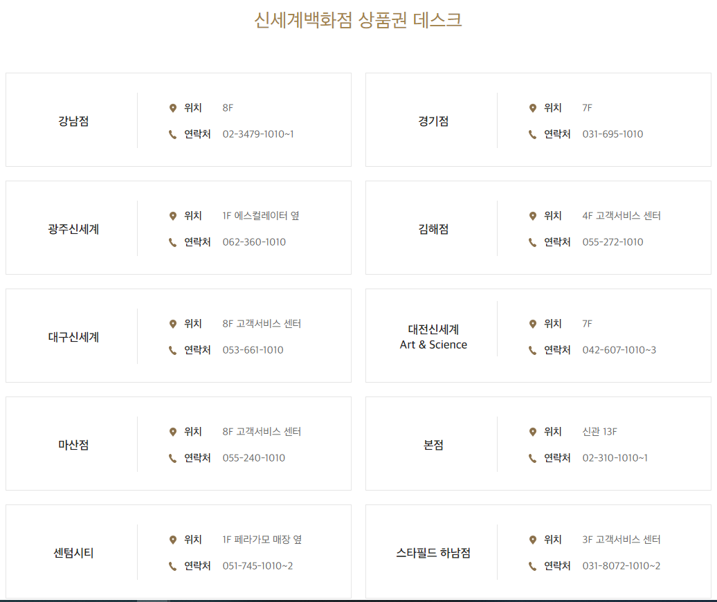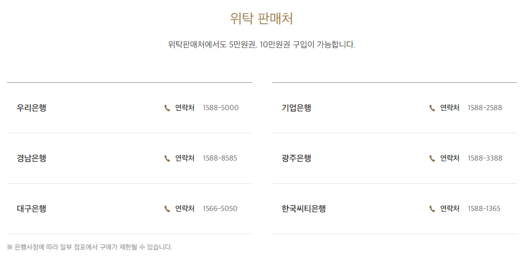 - 전국 신세계백화점, 이마트 및 신세계몰에서 현금 및 법인카드로 구입 가능