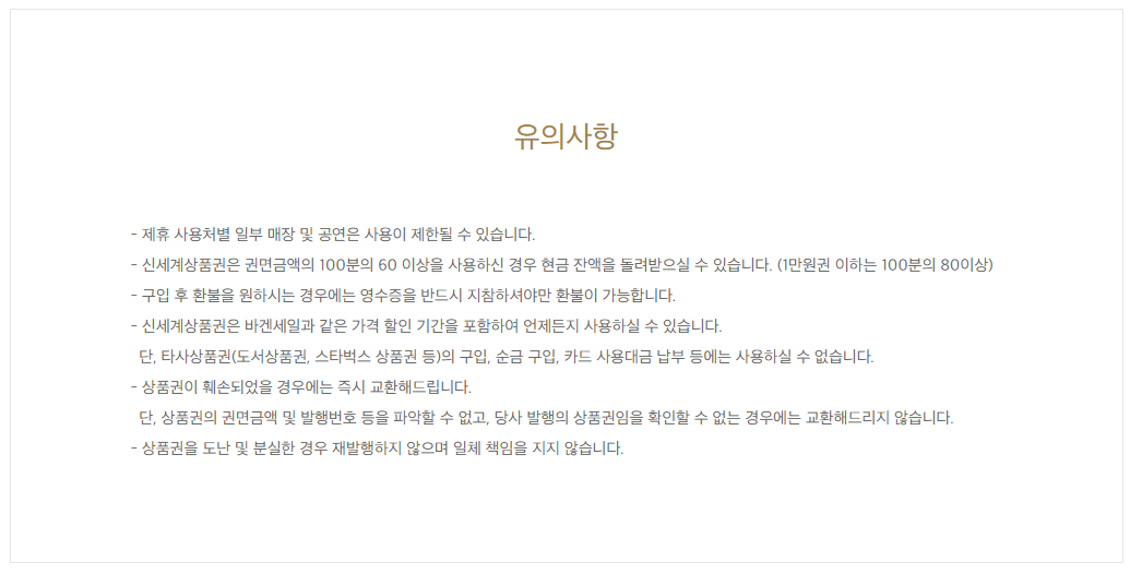 ♣ 신세계 상품권 사용시 유의 사항 ♣