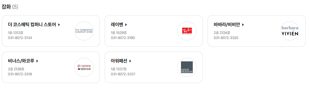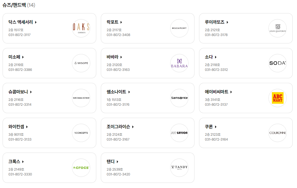 럭스컬렉티드, 마이클 코어스, 살바토레 페레가모, 세컨드런, 신세계 팩토리 스토어, 아르마니 스토어, 에스아이빌리지, 오일릴리, 코치, 투미
