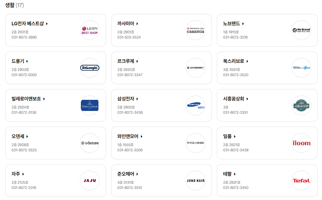 LG전자 베스트샵, 까사미아, 노브랜드, 드롱기, 르크루제, 북스리브로,