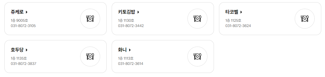전문 식당가 11:00 ~ 20:30 (식당가 폐점 30분 전 주문 마감)