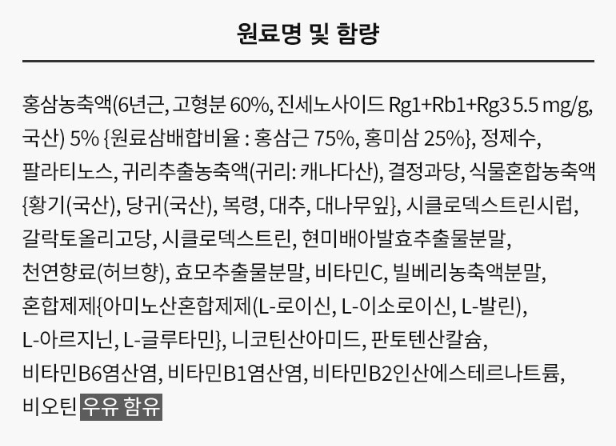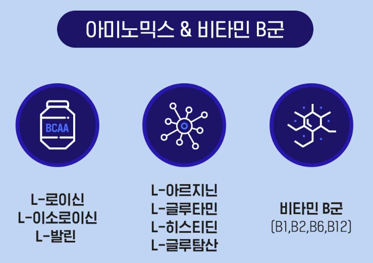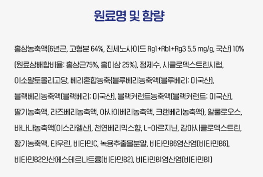 ⊙ 부원료 : L-아르지닌, L-글루타민, 비타민 B/C, 아미노믹스, 빌베리농축액