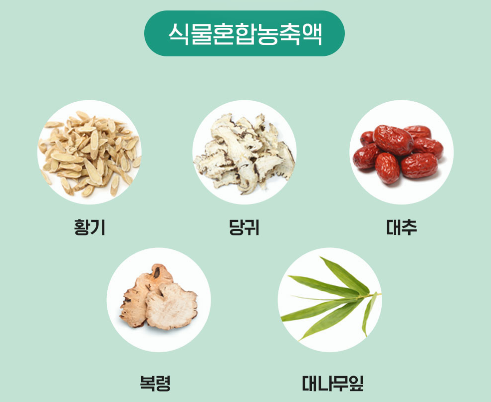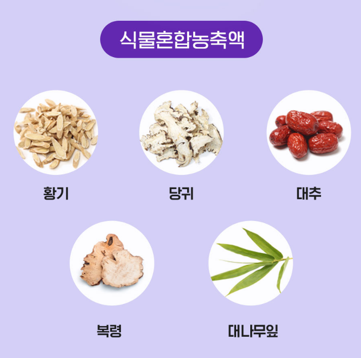- 황기, 당귀, 복령, 대추, 대나무잎의 식물성분을 담고 있습니다.