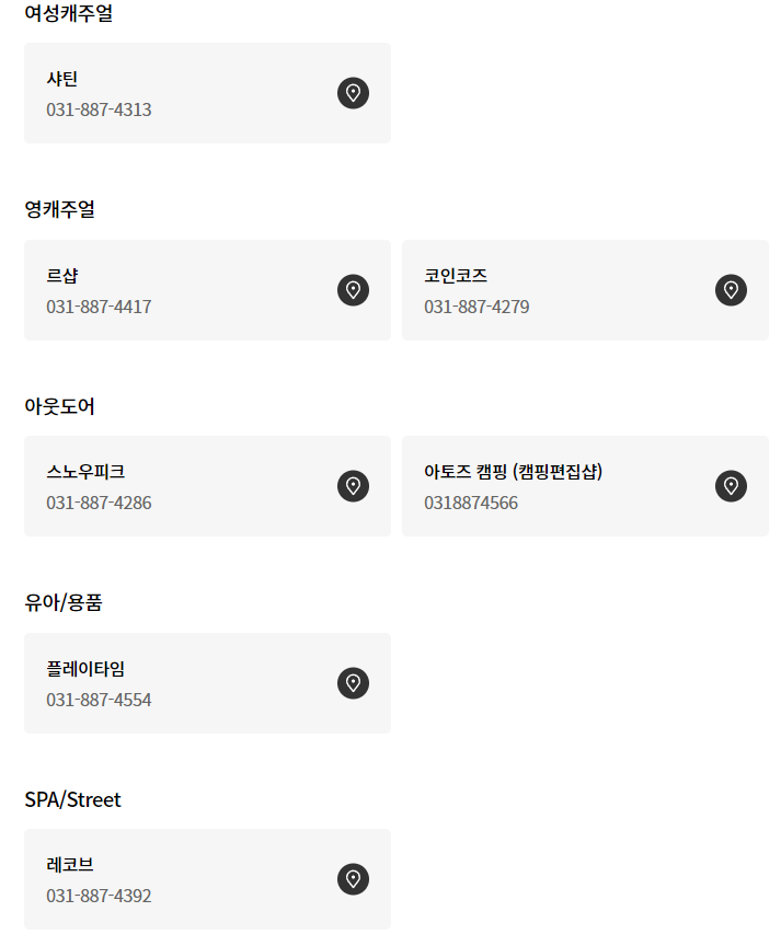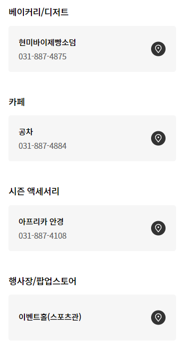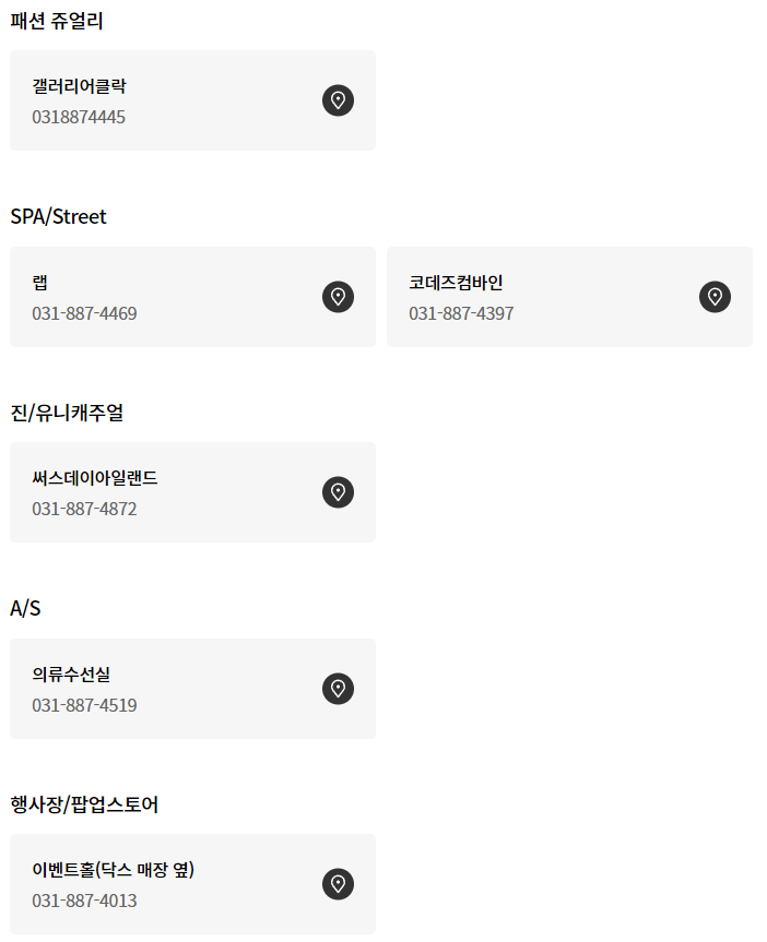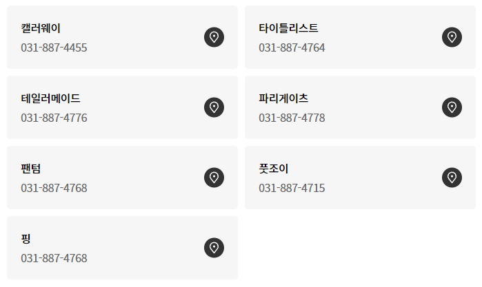 ⊙ 행사장/팝업스토어 - 이벤트홀(닥스 매장 옆) 031-887-4013