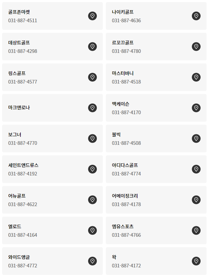 골프존마켓, 나이키골프, 데상트골프, 르꼬끄골프, 링스골프, 마스터바니,