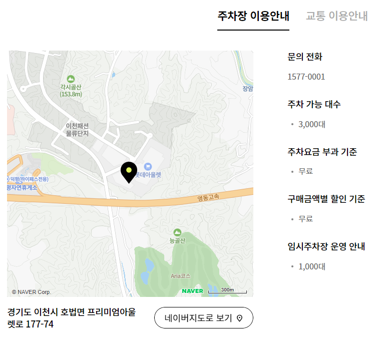주소 : 경기 이천시 호법면 프리미엄아울렛로 177-74 (호법면 단천리 864)
