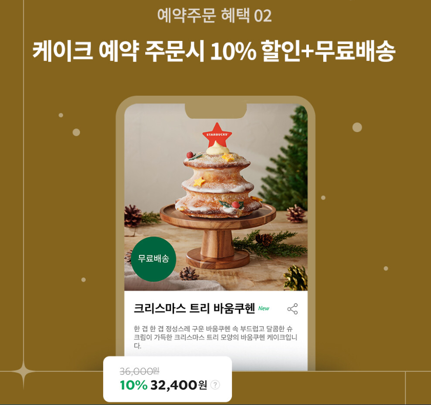 아래 기간 동안에 스타벅스 온라인 스토어에서 케이크를 예약 주문하시면