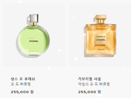 No.5, 코코 마드모아젤, 가브리엘 샤넬, 샹스, 샹스 오땅드르, 샹스 오 후레쉬, 샹스 오 비브,