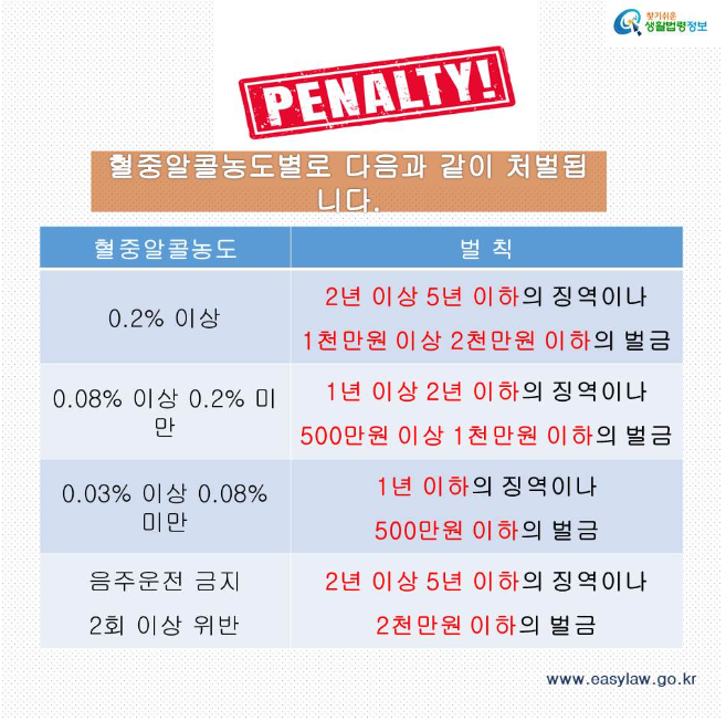 ◈ 음주운전 벌금 처벌 기준 면허취소 후 재취득 수치