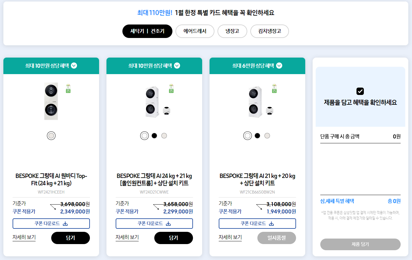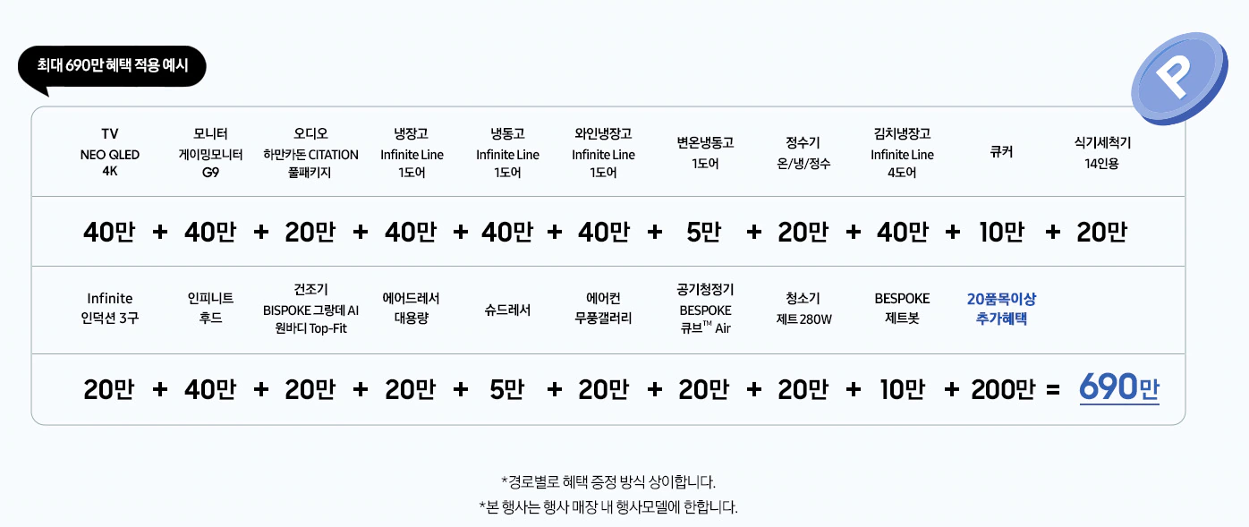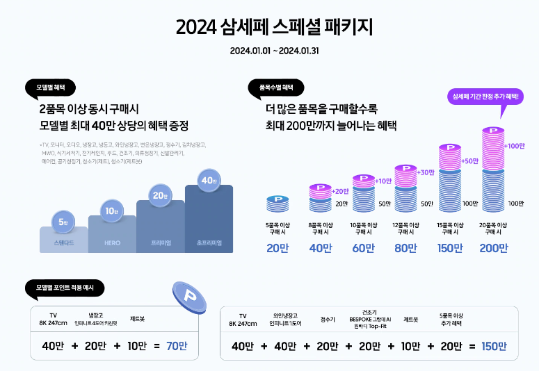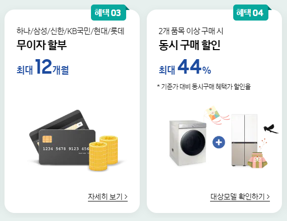 2품목 이상 동시 구매 시 모델별 최대 40만 상당의 혜택 증정