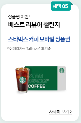 베스트 리뷰어 챌린지 - 스타벅스 커피 모바일 상품권(아메리카노 톨 사이즈 1매 기준)