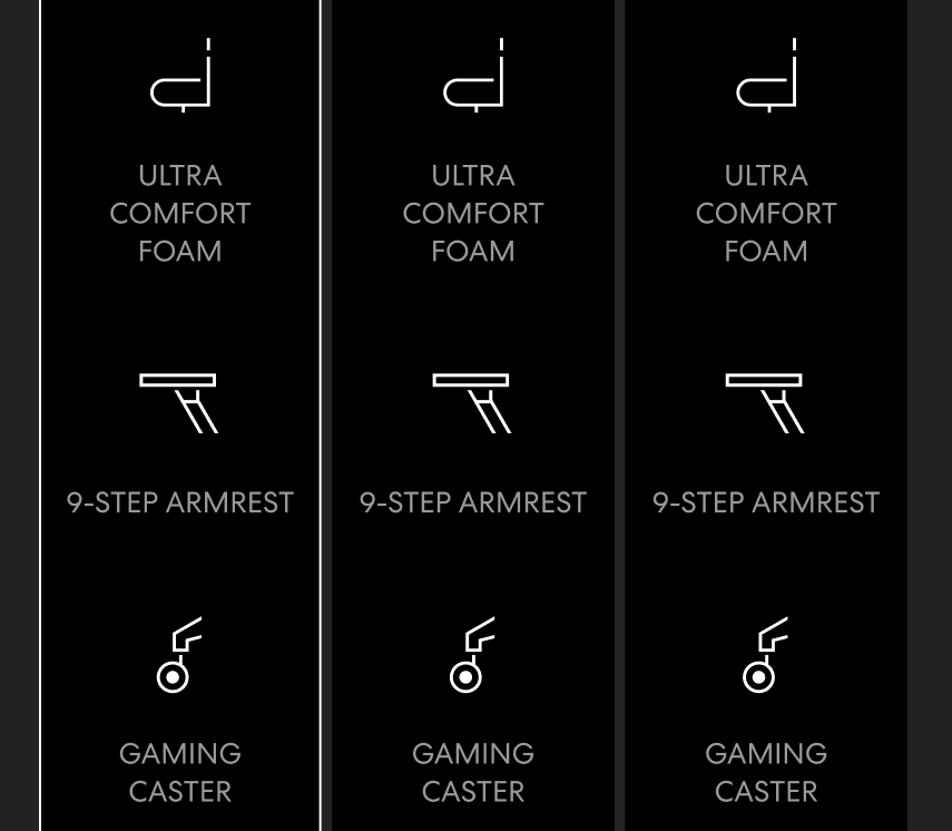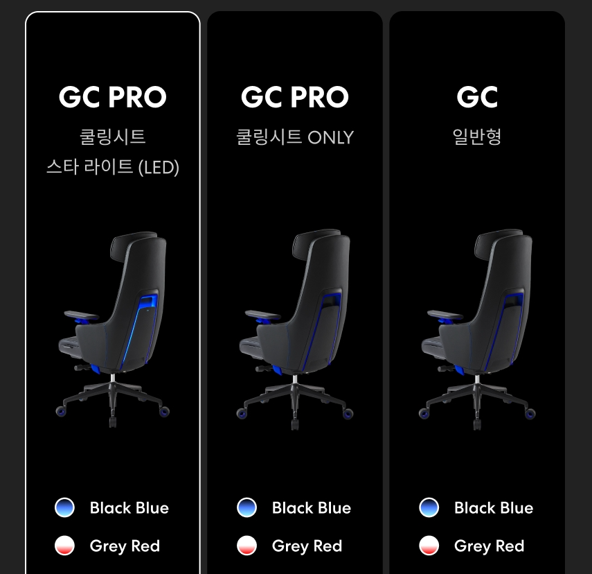 시디즈 GC PRO 2가지와 GC 일반형 비교표는 아래사진과 같습니다.