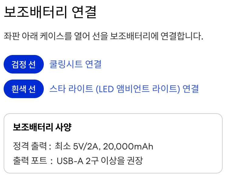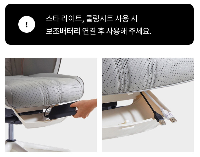 ◈ 스트 라이트, 쿨링시트 사용 시 보조배터리 연결 후 사용