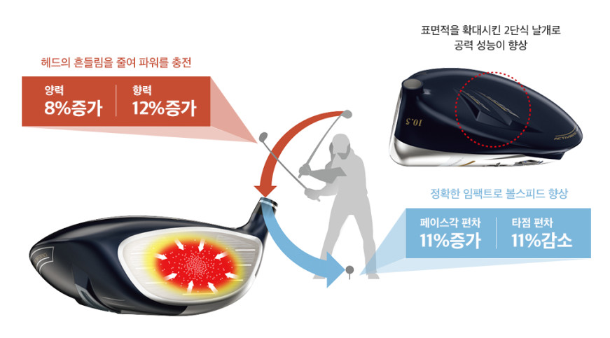 New ActivWing의 효과로 임팩트 시 이상적인 페이스각을 형성하여