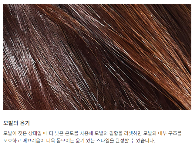 과도한 열 손상을 방지하고 모발 본연의 자연스러운 윤기를 보호해 주도록 설계되었습니다.