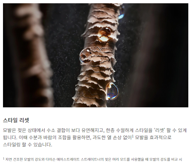모발이 젖은 상태일 때 낮은 온도를 사용해 모발의 결합을 리셋하면 모발의 내부 구조를 보호하고