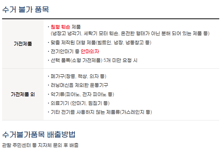 ◈ 수거 불가품목 배출방법 : 관할 주민센터 등 지자체 문의 후 배출