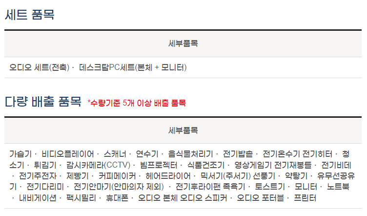 ⊙ 선택 품목(소형 가전제품) 5개 미만 요청 시