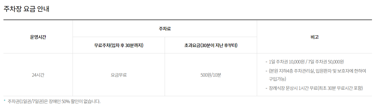 ♣ 주차요금 (장례식장도 동일합니다) ♣
