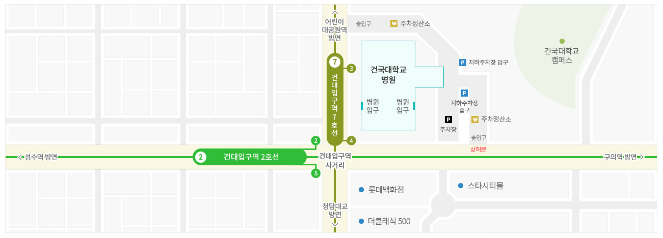 ◈ 지하철 : 2호선 건대입구역 2번 출구 / 7호선 건대입구역 3, 4번 출구