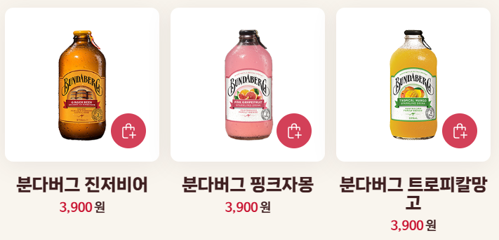 분다버그 핑크자몽, 분다버그 트로피칼망고, 노아주스 애플, 노아주스 오렌지, 노아주스 레드스무디