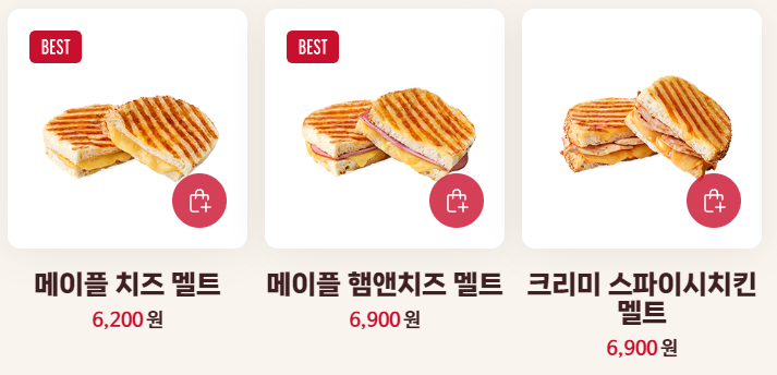 메이플 치즈 멜트, 메이플 햄앤치즈 멜트, 크리미 스파이시치킨 멜트