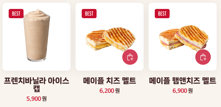 자바칩 아이스캡, 프렌치 바닐라 아이스캡, 메이플 치즈 멜트, 메이플 햄앤치즈 멜트