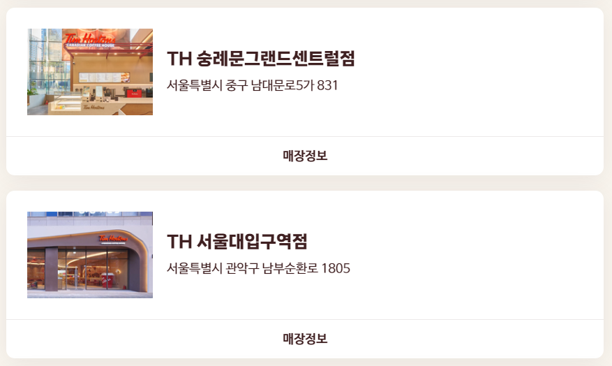 TH 신논현역점, TH 선릉역점, TH 숭례문그랜드센트럴점, TH 서울대입구역점