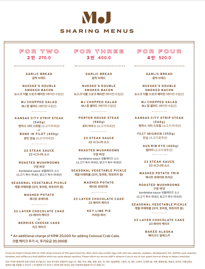 마이클 조던 스테이크 하우스 내부 모습과 메뉴와 가격에 대해서 정리해 보았습니다.