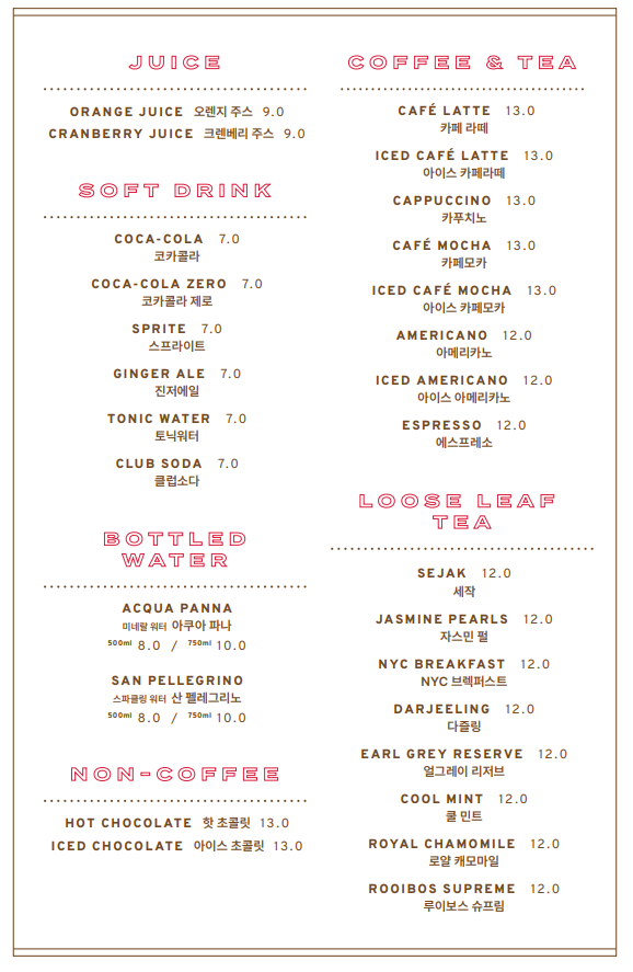 석식 : 5 :30 pm ~ 10:00 pm (마지막 주문 : 09:00 pm)