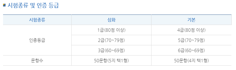 1급(80점이상) / 2급(70~79점) / 3급(60~69점)