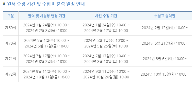 ◈ 원서 수정 기간 및 수험표 출력 일정 안내