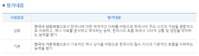 한국사 기본과정으로서 기초적인 역사 상식을 바탕으로 한국사의 필수 지식과 기본적인 흐름을 이해하는 능력을 평가