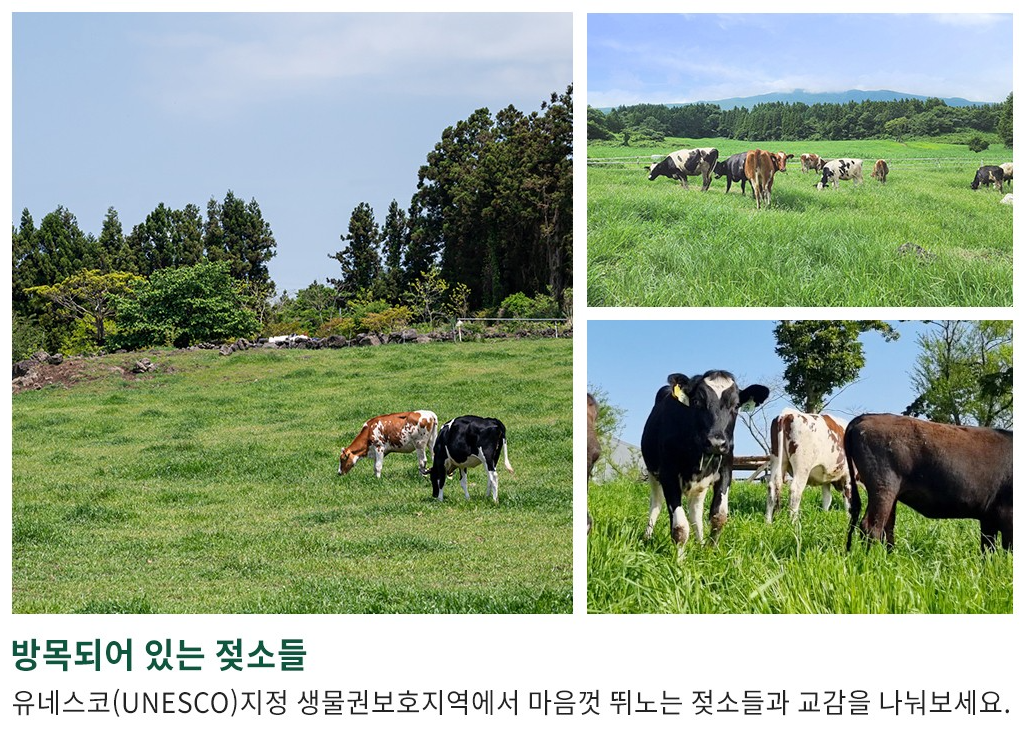 유네스코(UNESCO) 지정 생물권보호지역에서 마음껏 뛰노는 젖소들과 교감을 나눠보세요.