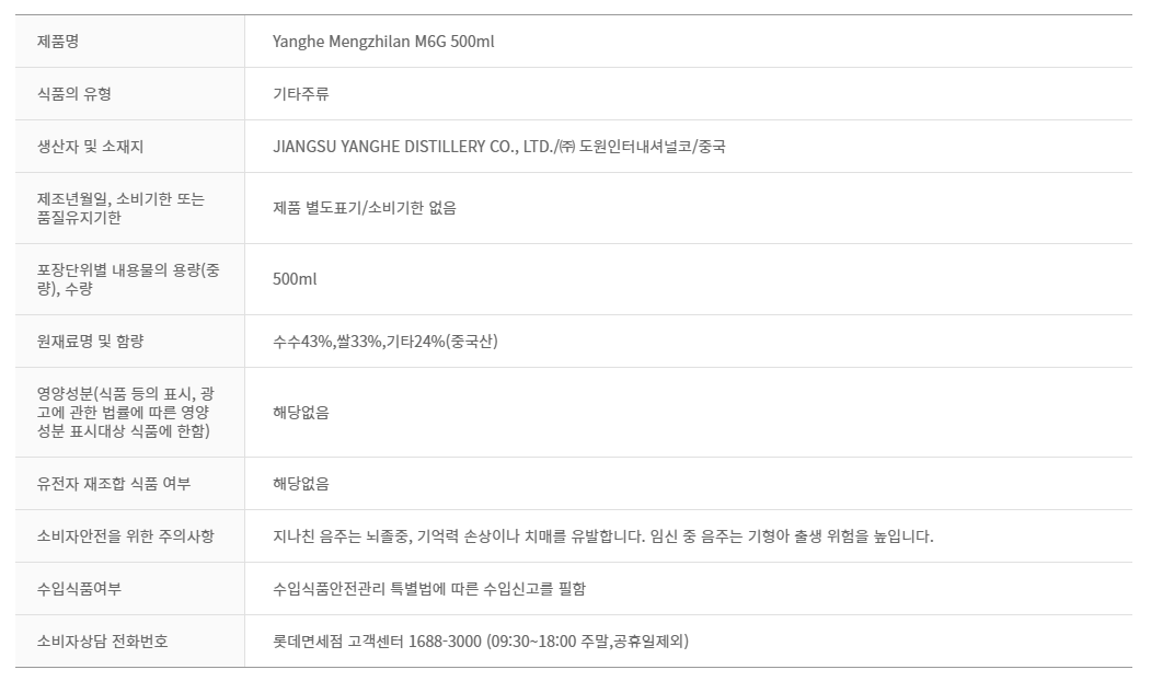 생산자 및 소재지 : JIANGSU YANGHE DISTILLERY CO., LTD. / 중국