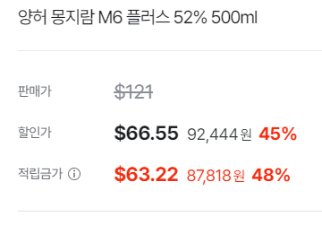 양허 몽지람 M6 플러스 52% 500ml