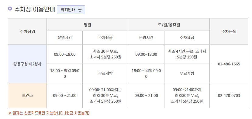 강동구청 주차장 주차요금 운영시간 층별안내 야간 민원실 전화번호 홈페이지