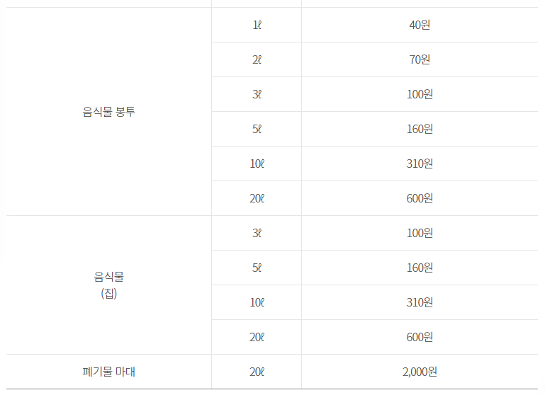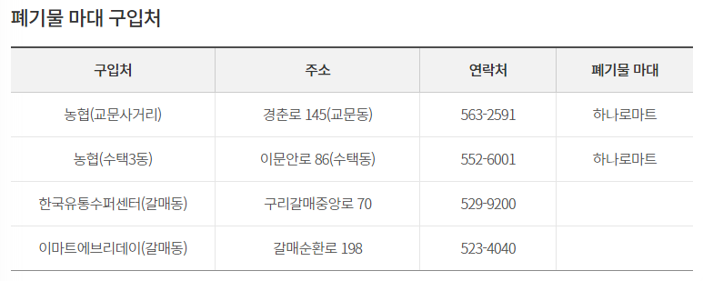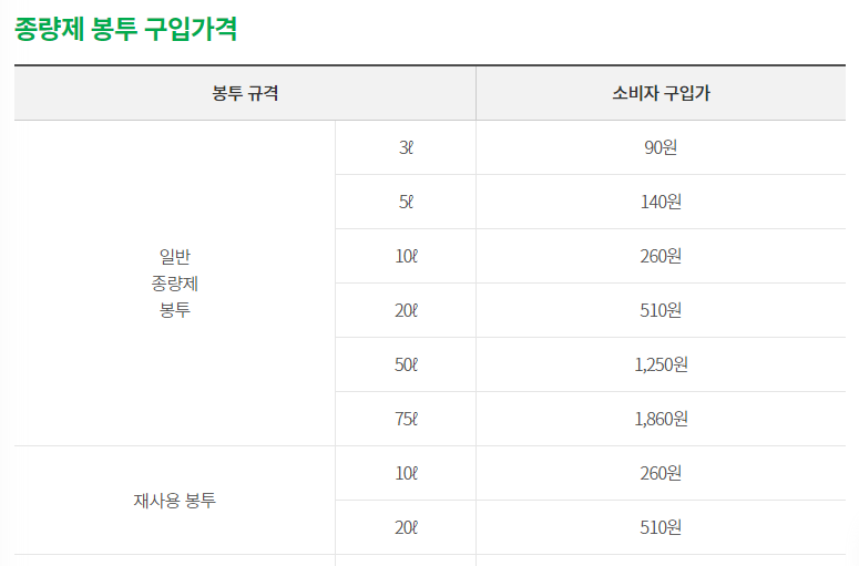 구리시 종량제봉투 가격 크기 음식물쓰레기 봉투 대형폐기물 폐가전제품 무상수거 무료수거 인터넷 신고 판매처 수수료