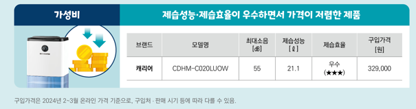 ◈ 가성비 : 제습성능, 제습효율이 우수하면서 가격이 저렴한 제품
