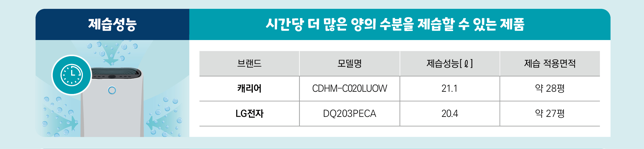 ◈ 제습성능 : 시간당 더 많은 양의 수분을 제습할 수 있는 제품