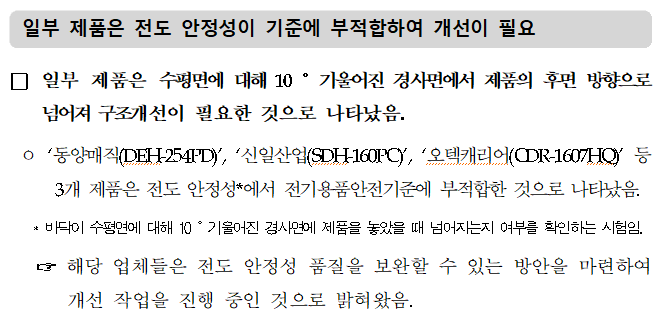 ◈ 일부 제품은 전도 안전성 기준에 부적법하여 개선이 필요