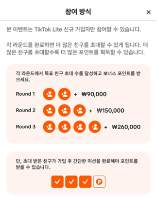 ⊙ 본 이벤트는 TikTok Lite 신규 가입자만 참여할 수 있습니다.